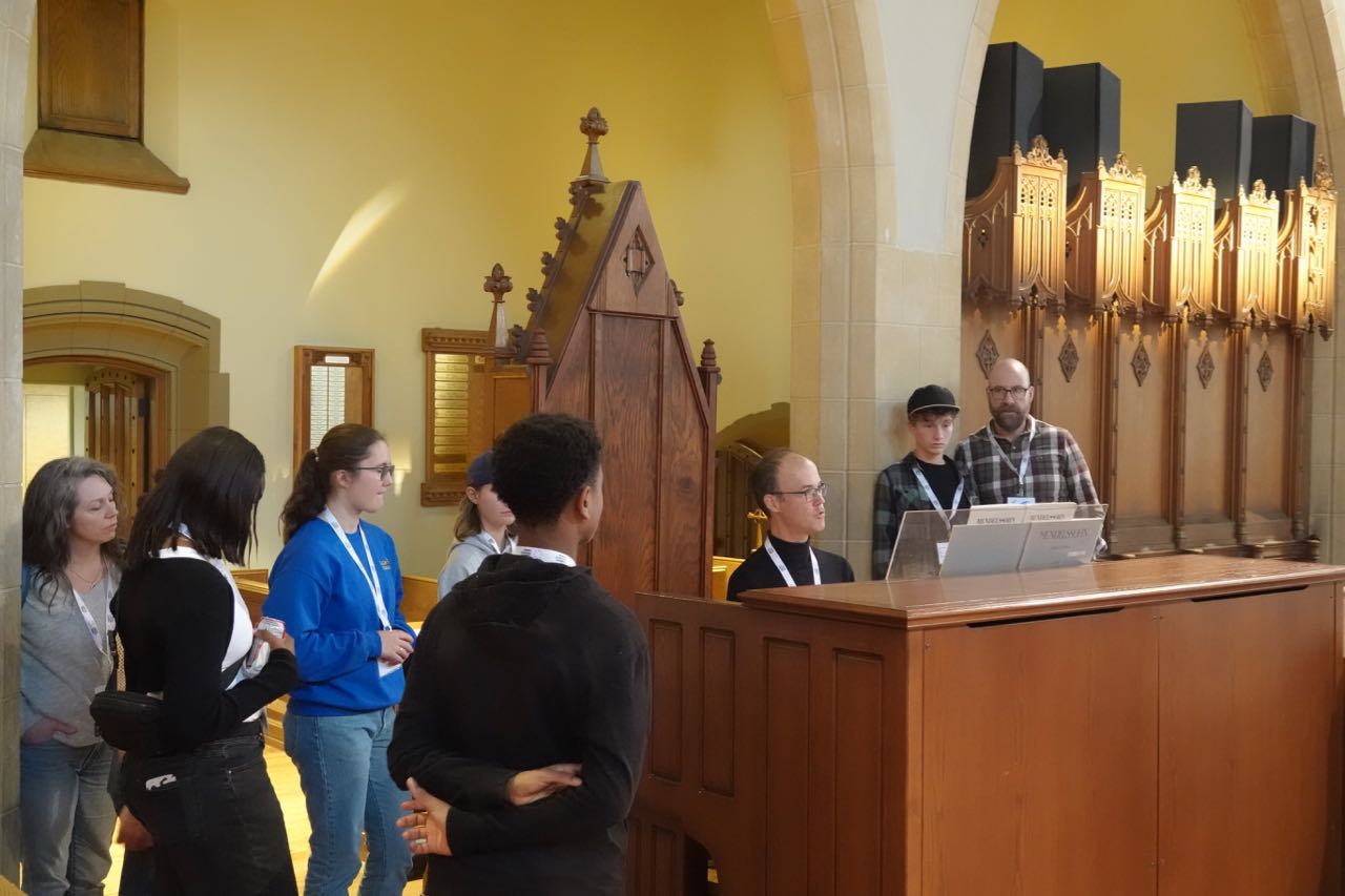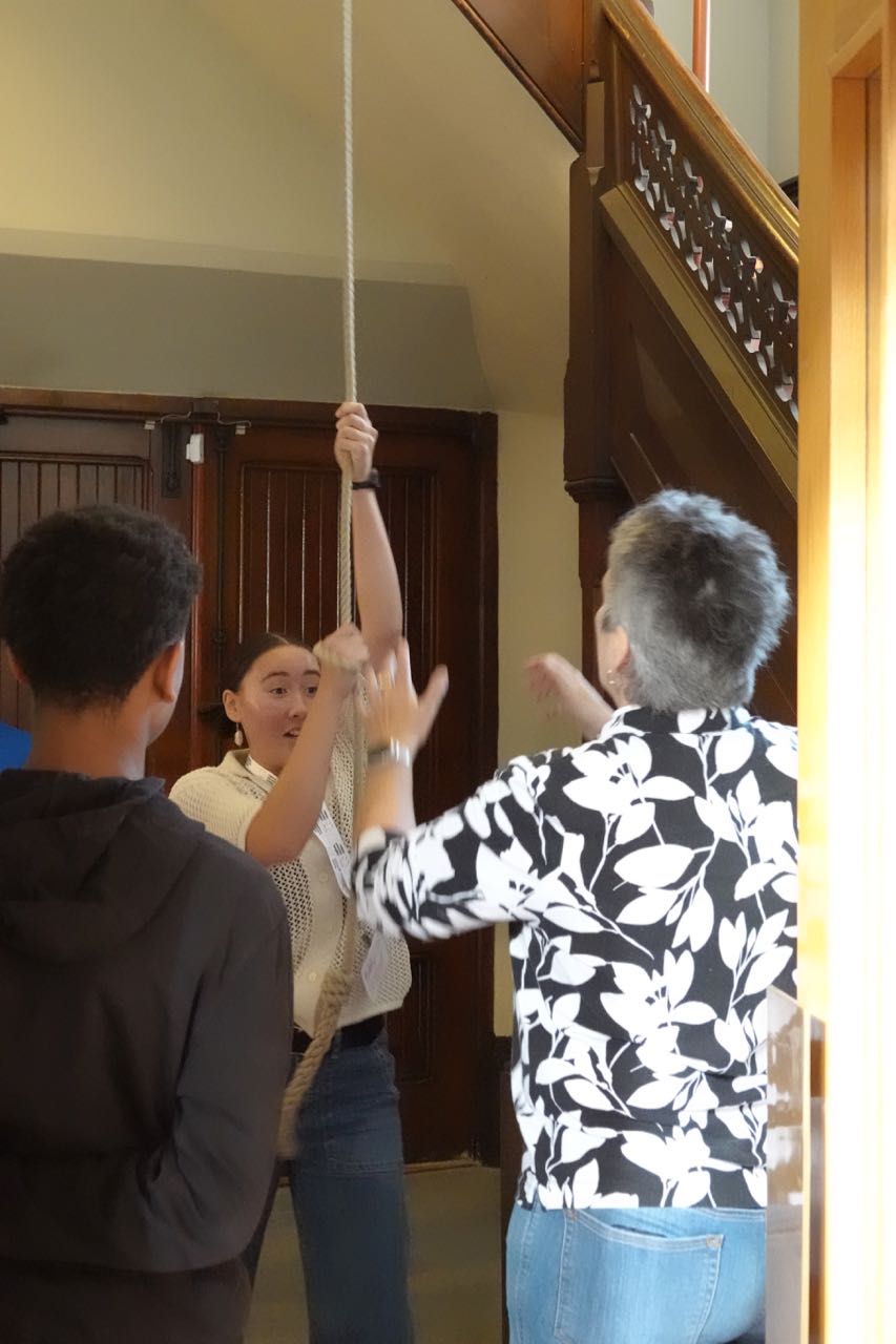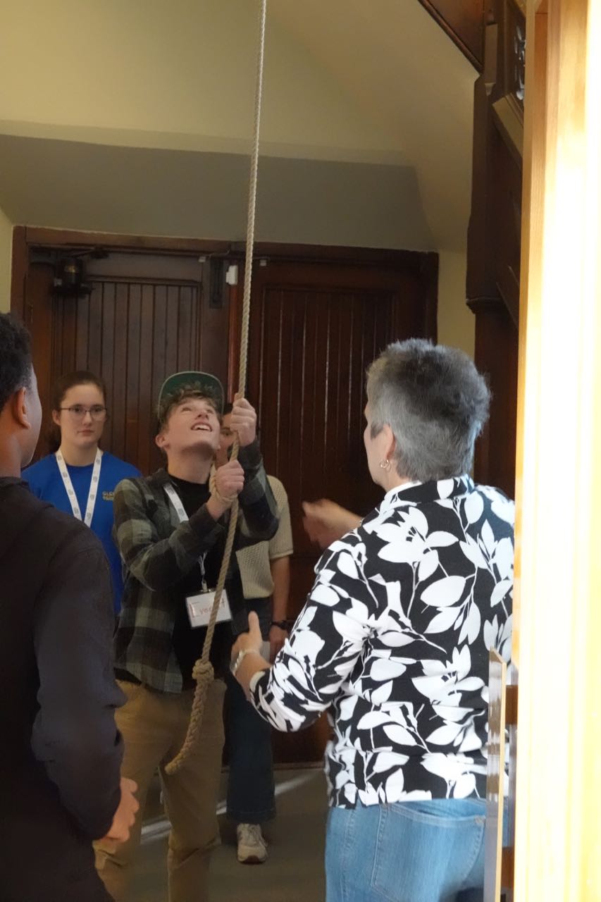 The youth had an opportunity to explore the Cathedral, learning about its magnificent stained glass windows, symbols, seats for the bishop and Cathedral canons, as well as whimsical touches like the carvings of four church mice tucked into hiding spots around the sanctuary. And they tried their hands at ringing the bells.