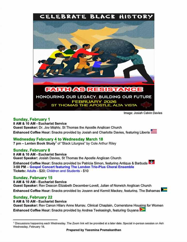 A dedicated group of parishioners at St. Thomas the Apostle is preparing for our annual February celebration of Black History Month. Following the national BHM 2026 theme of Resistance, our theme is Faith as Resistance.