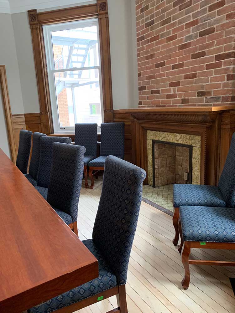 The work required was extensive — a new roof, windows, ventilation system, electrical system and plumbing. The basement was sealed to create useable storage space. New accessible washrooms and a small utility kitchen were added. Wood floors were refinished. A meeting room was created on the main floor from what was previously a mail room and washroom. The meeting room has been named the Akikodjiwan Room (phonetically A-kee-ko-gee-wan) which means ‘fast moving waters’, referring to the rapids known as Chaudiere Falls.