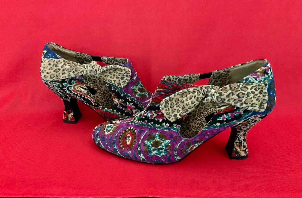 The auction includes: Winterscape by Mireille Laroche (above), an earthenware Asian horse and these funky Baci shoes (below)